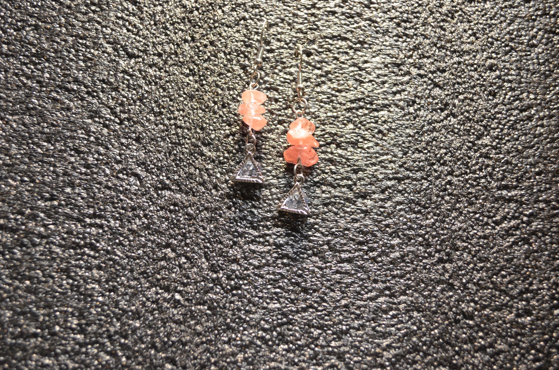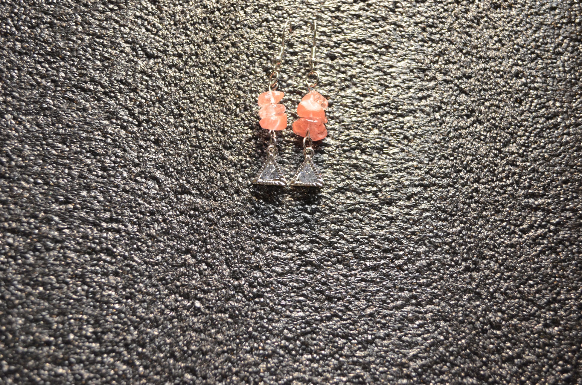 PINK QUARTZ PYRAMID ZIRCONIA EAR RINGS