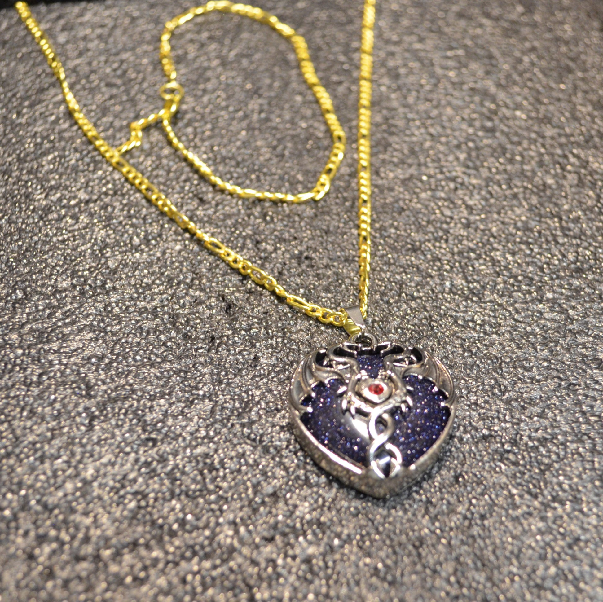 PUPPLE SAND STONE DRAGON HEART PENDANT FIGARO GOLD NECKLACE