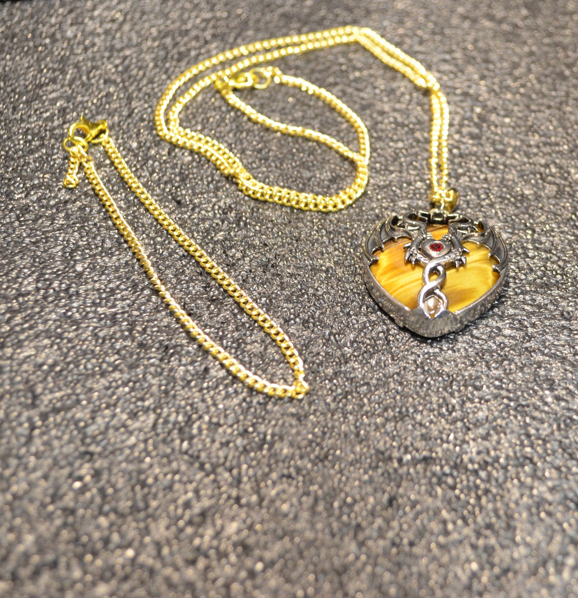TIGER EYE DRAGON HEART PENDENT GOLD CHAIN / GOLD BRACELET