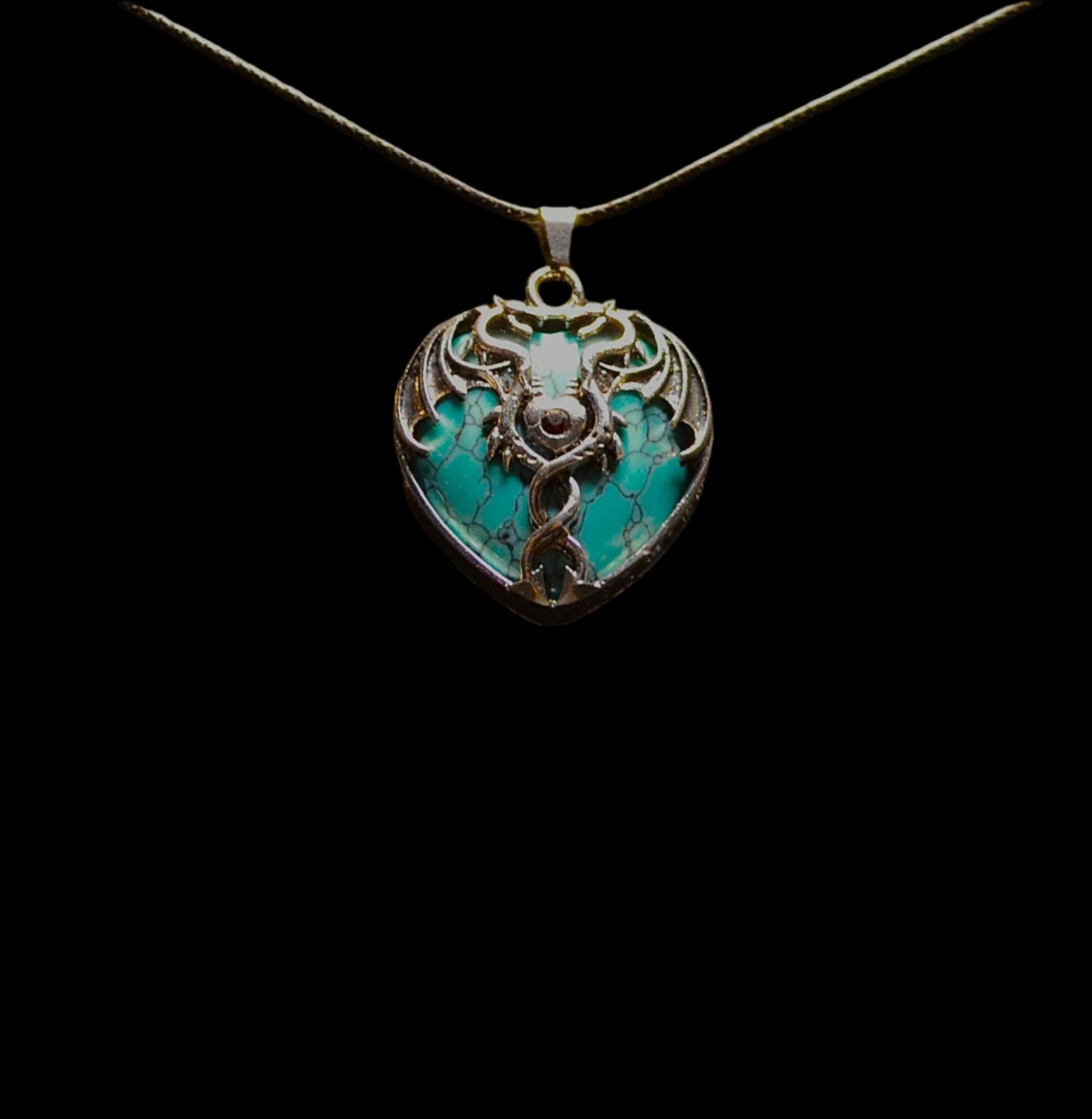 BLUE TURQUOISE DRAGON HEART PENDANT